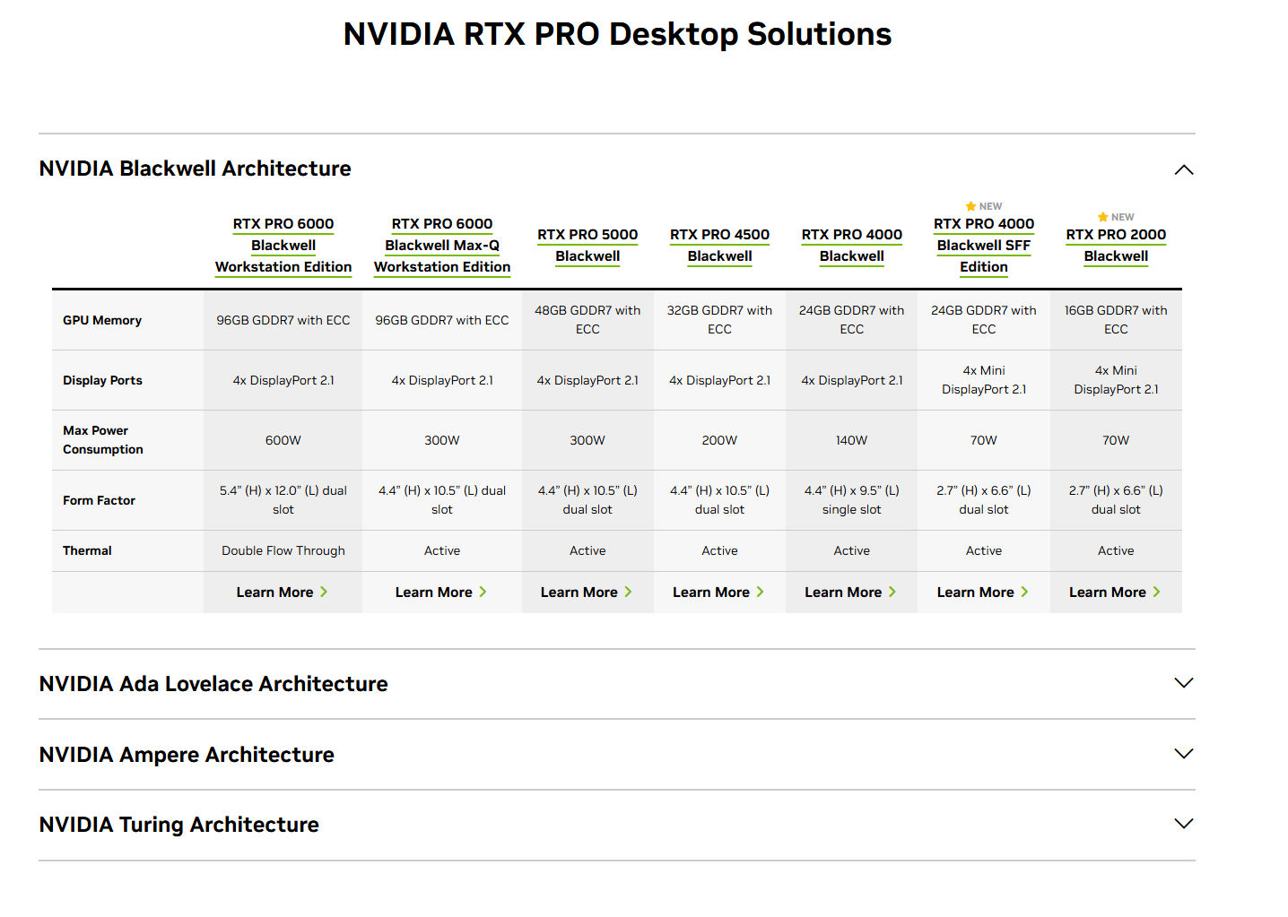 Nvidia 目前市场的主力是 Blackwell 系列和 Ada Lovelace 系列,Ampere 系列正在逐步退出。Hopper 系列是专注于企业级市场。